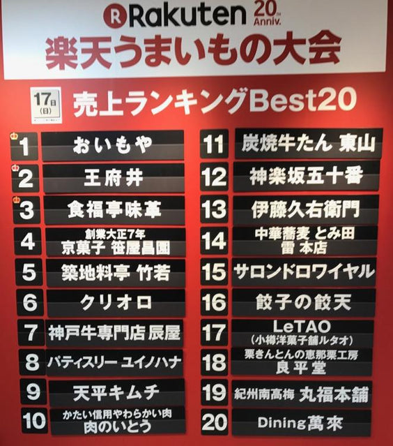 「楽天20周年記念 楽天うまいもの大会」にて辰屋の商品をテレビ番組でご紹介いただきました。