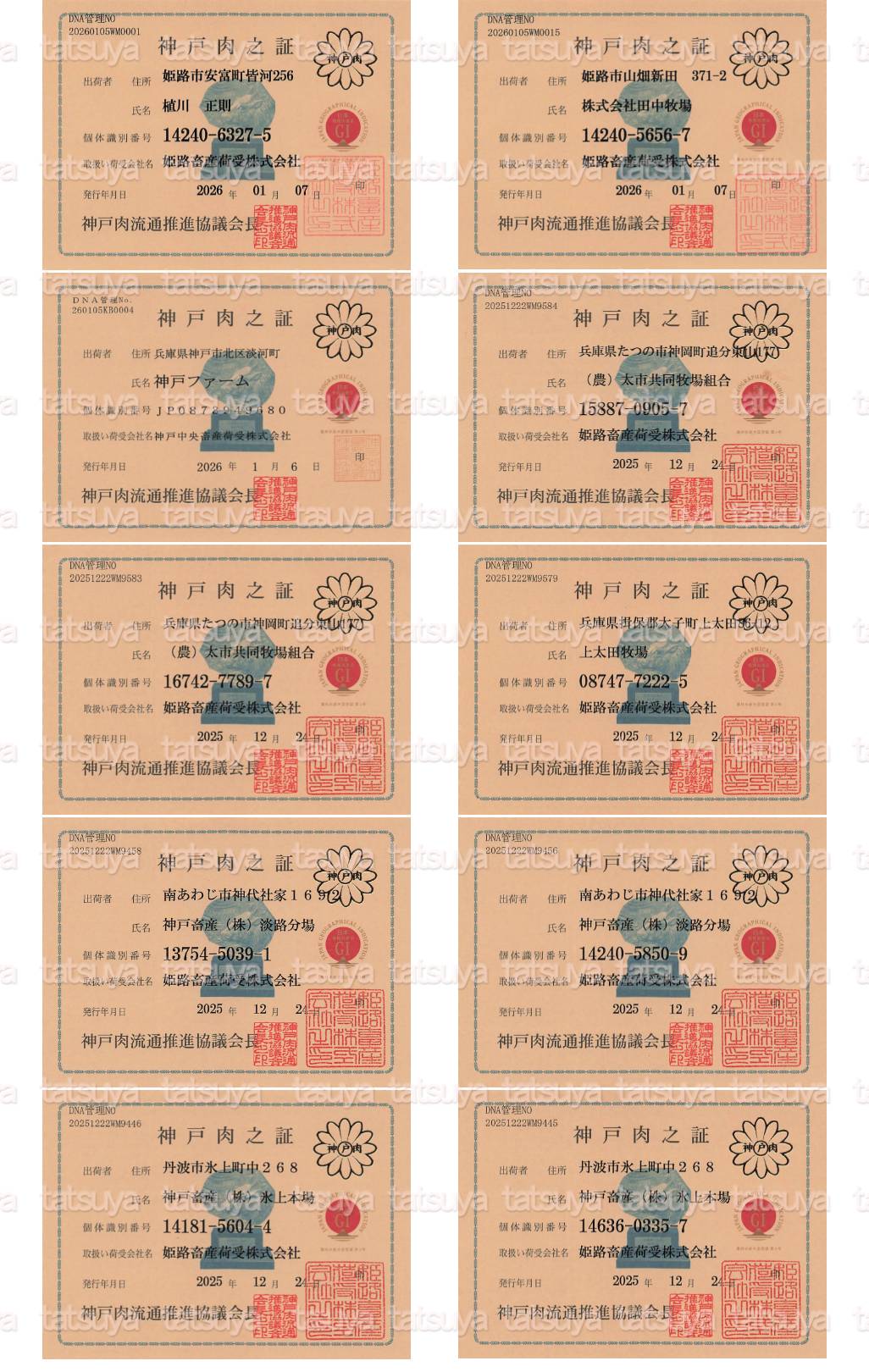 ブリスケ(左), ブリスケ(右), ウデ(左), ウデ(右), トンビ(左), トンビ(右), リブロース(左), リブロース(右), サーロイン(左), サーロイン(右), ヘレ(左), ヘレ(右)