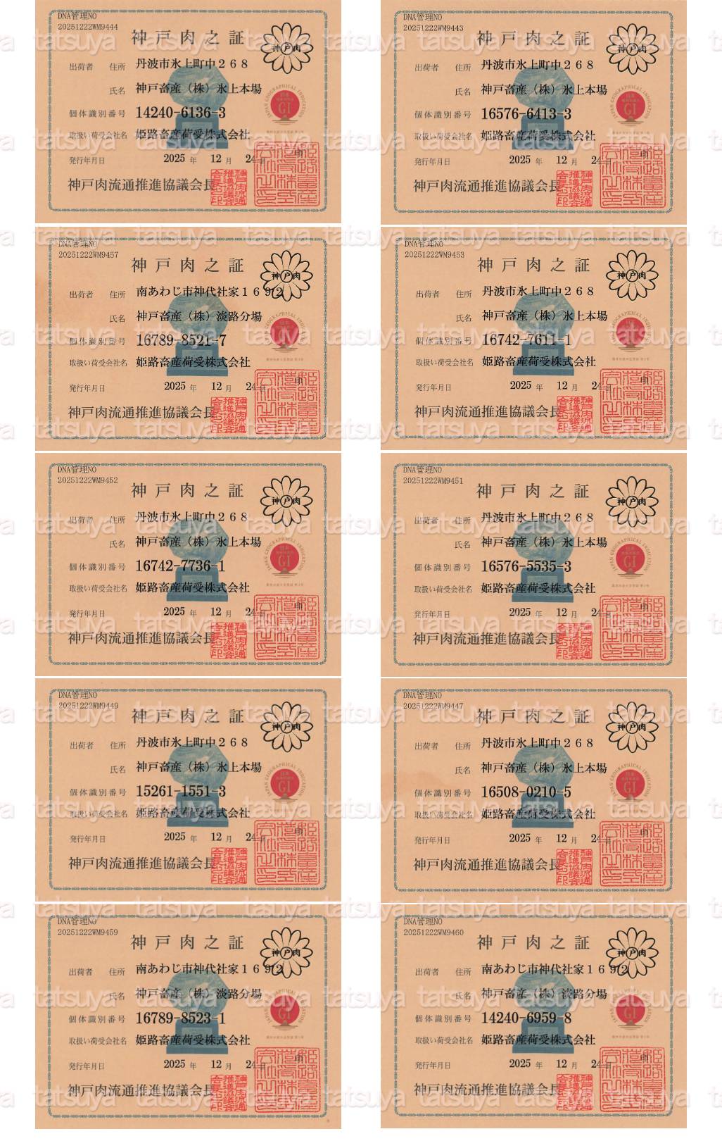 ブリスケ(左), ウデ(左), ウデ(右), トンビ(左), トンビ(右), ウチヒラ(左), ウチヒラ(右), ラムイチ(左), ラムイチ(右)